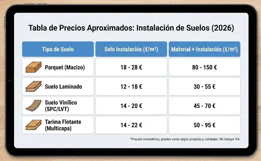¿Incluye la venta e instalación del suelo de parquet en el presupuesto final?